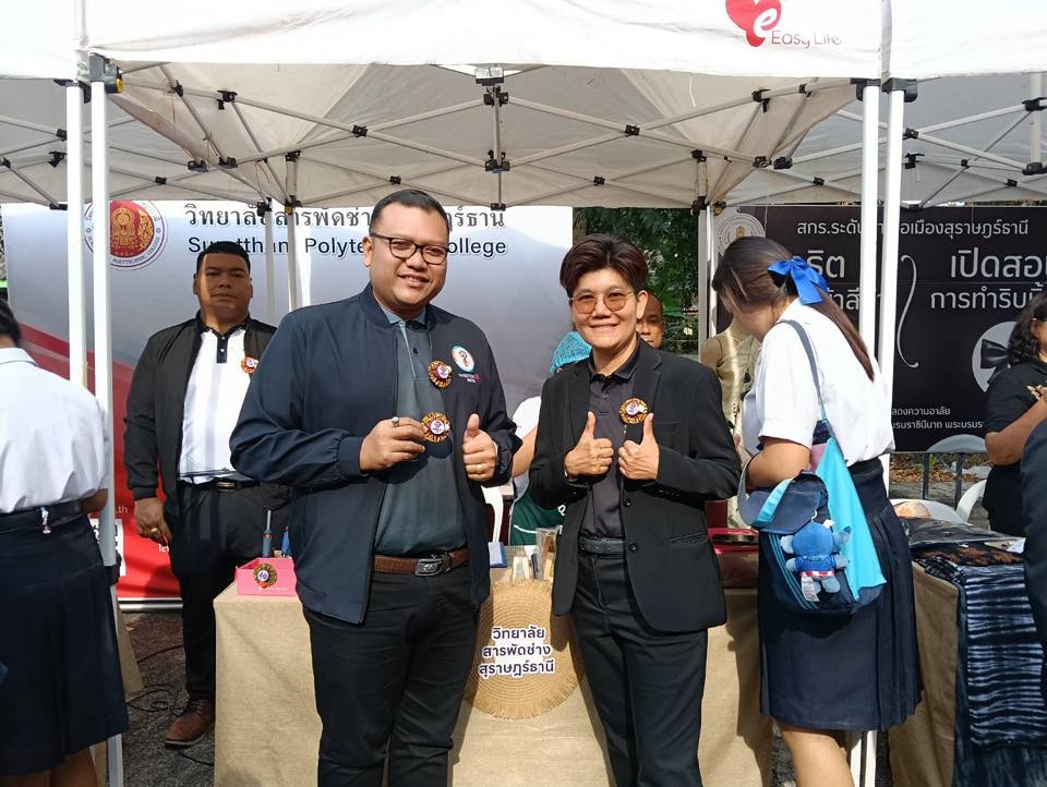 - โดยมีการจัดบูธหลักสูตรระยะสั้น ซึ่งดำเนินการโดยคณะครูและบุคลากรทางการศึกษาวิทยาลัยสารพัดช่างสุราษฎร์ธานี