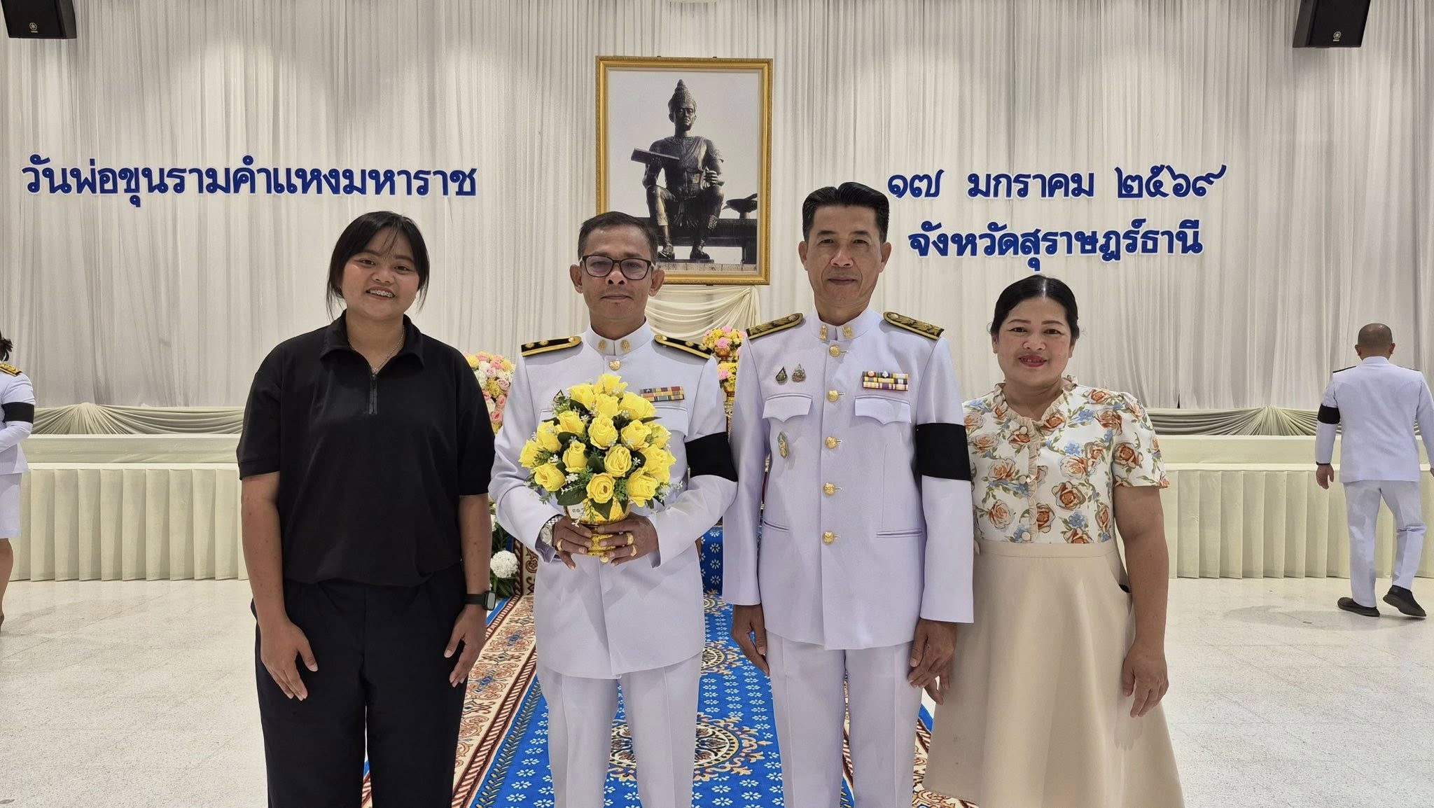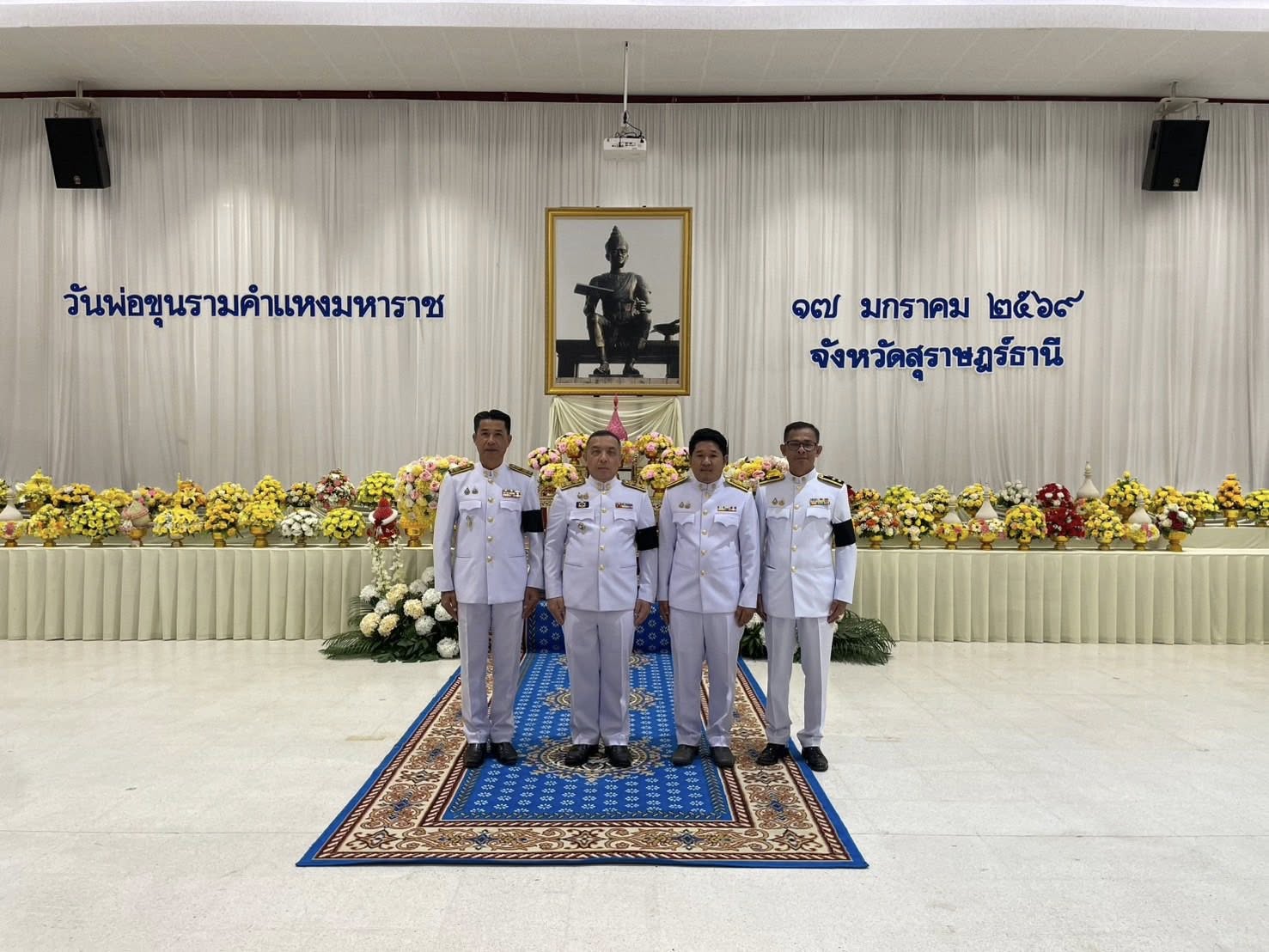-ดร.ฉันทนา โพธิครูประเสริฐ ผู้อำนวยการวิทยาลัยสารพัดช่างสุราษฎร์ธานี มอบหมายให้ คณะผู้บริหาร คณะครู และบุคลากรทางการศึกษา เข้าร่วมงานรัฐพิธี “วันพ่อขุนรามคำแหงมหาราช” ประจำปีพุทธศักราช 2569 ณ อาคารศูนย์กลางการประชุมสัมนาภาคใต้ตอนบน ศูนย์ราชการจังหวัดสุราษฎร์ธานี