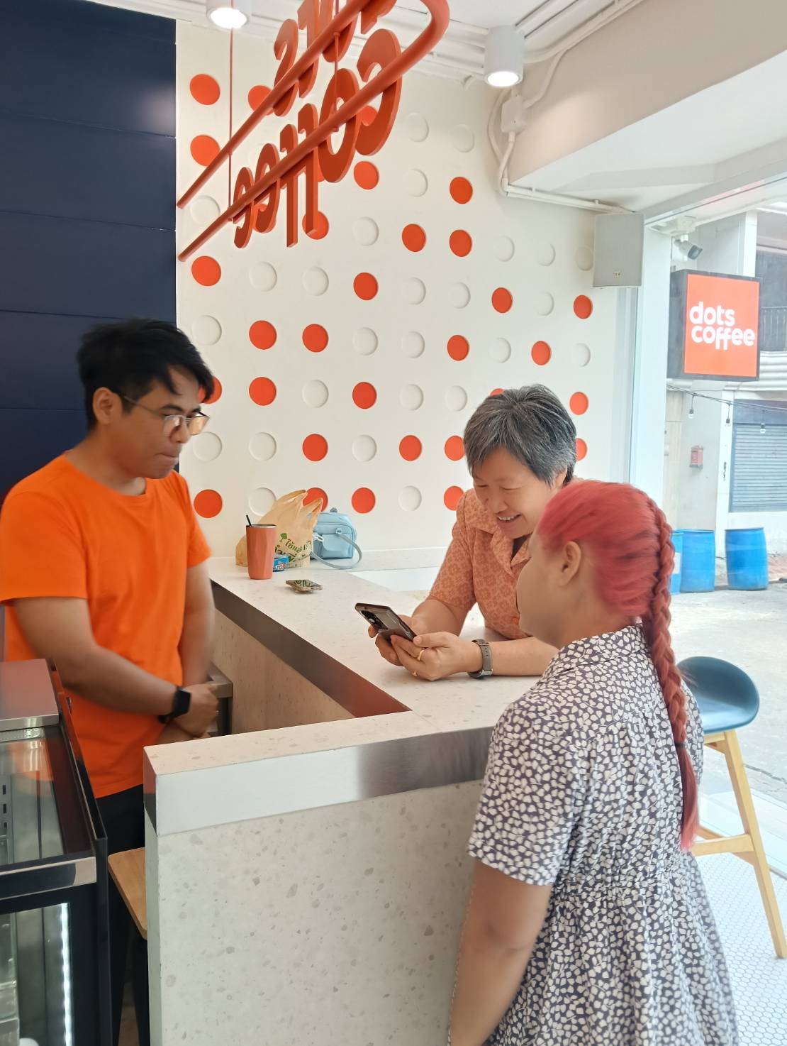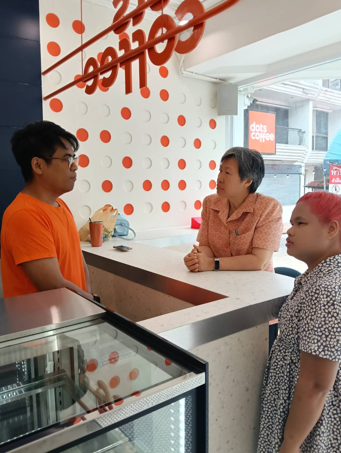 โพธิครูประเสริฐผู้อำนวยการวิทยาลัยสารพัดช่างสุราษฎร์ธานีพร้อมด้วยคณะครูนิเทศการฝึกประสบการณ์วิชาชีพหลักสูตรประกาศนียบัตรวิชาชีพชั้นสูง(ปวส.)แผนกวิชาการจัดการ ณ Dots coffee สาขาถนนวิทยุ