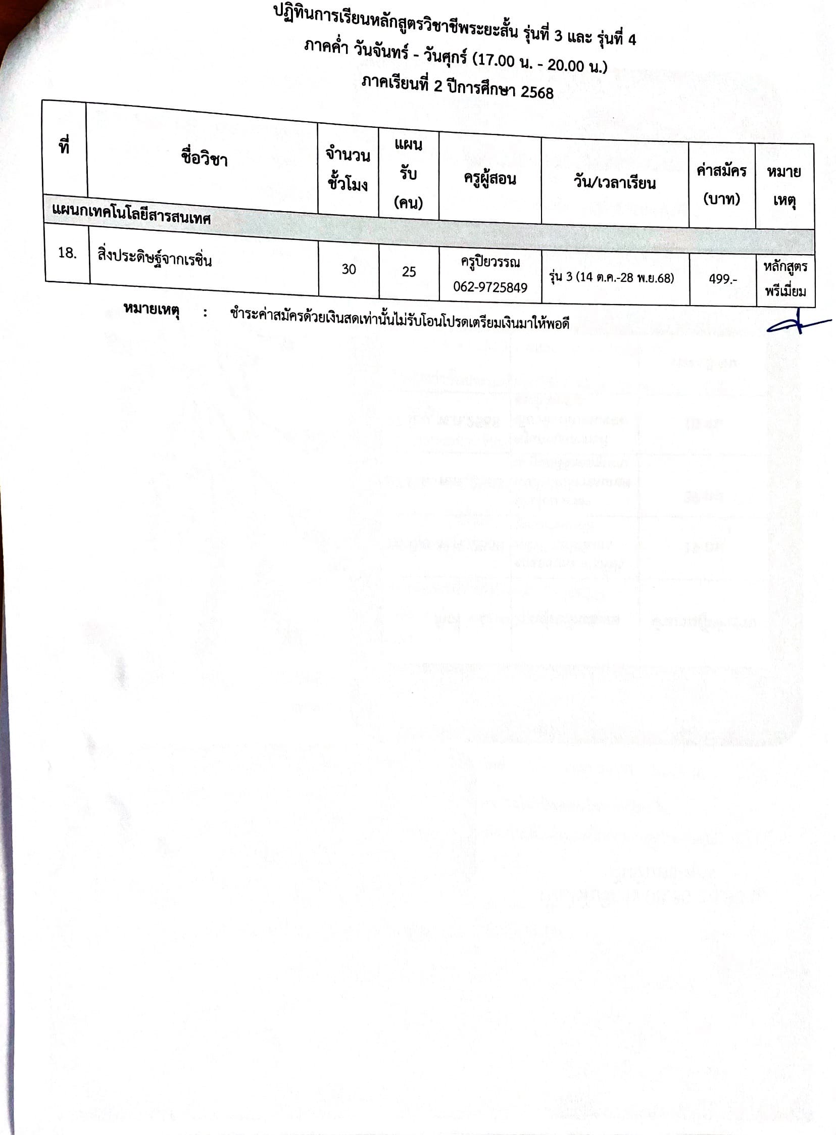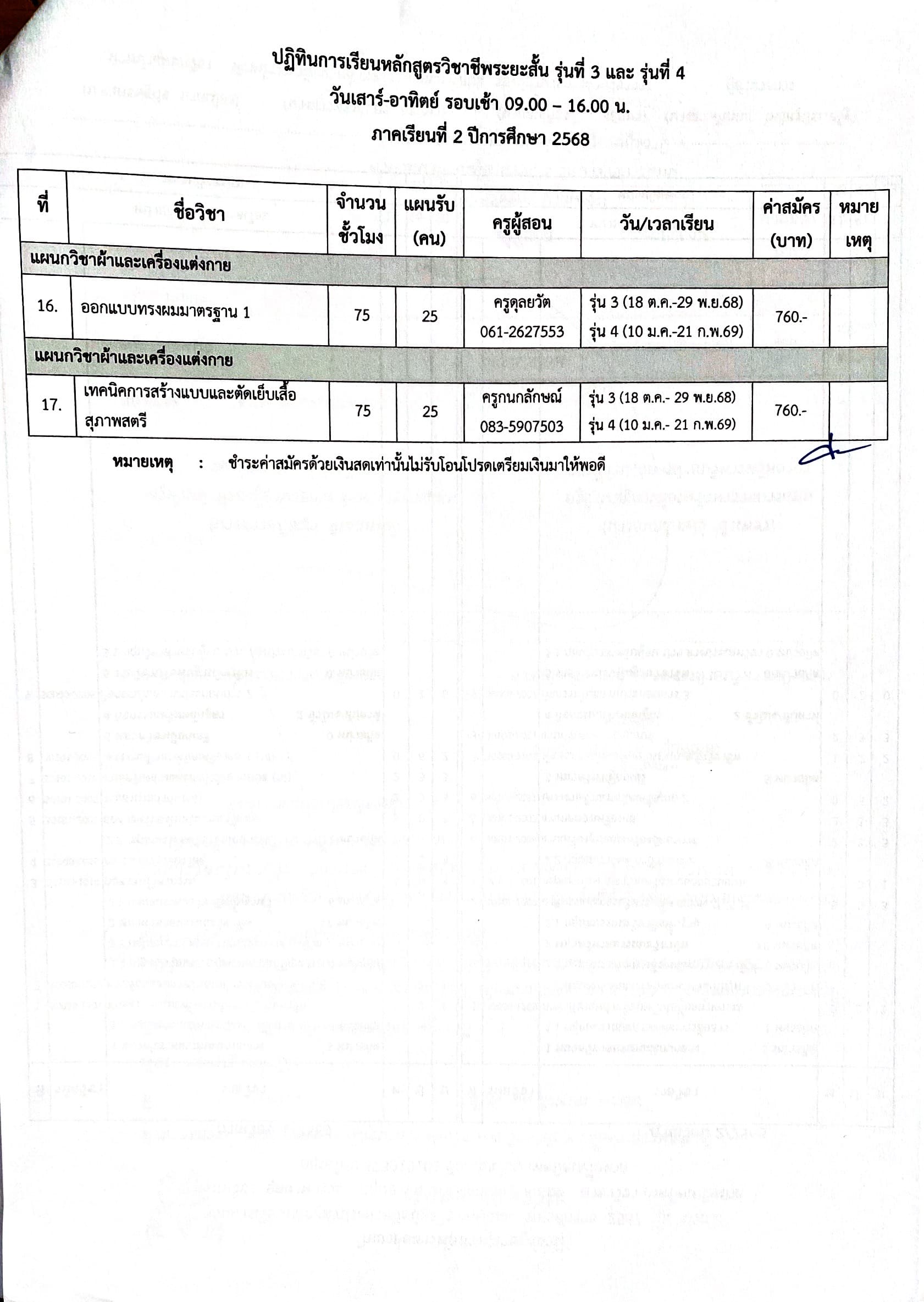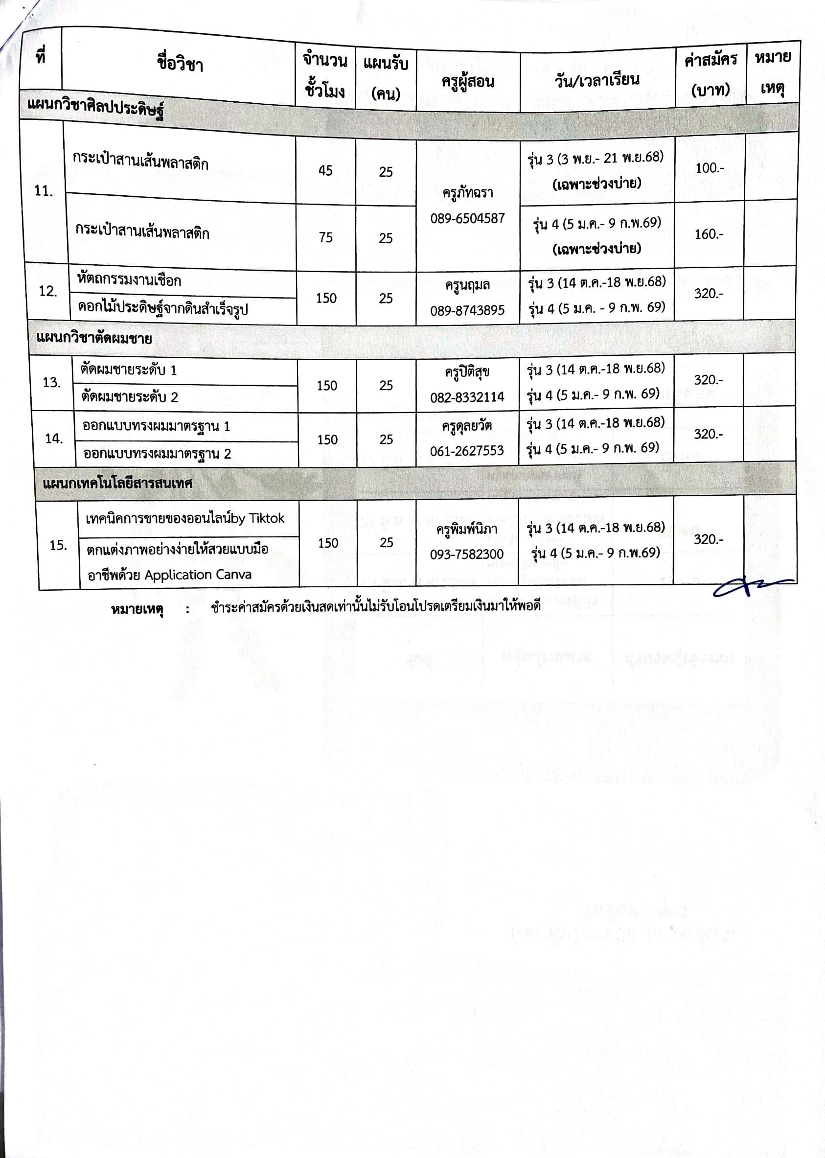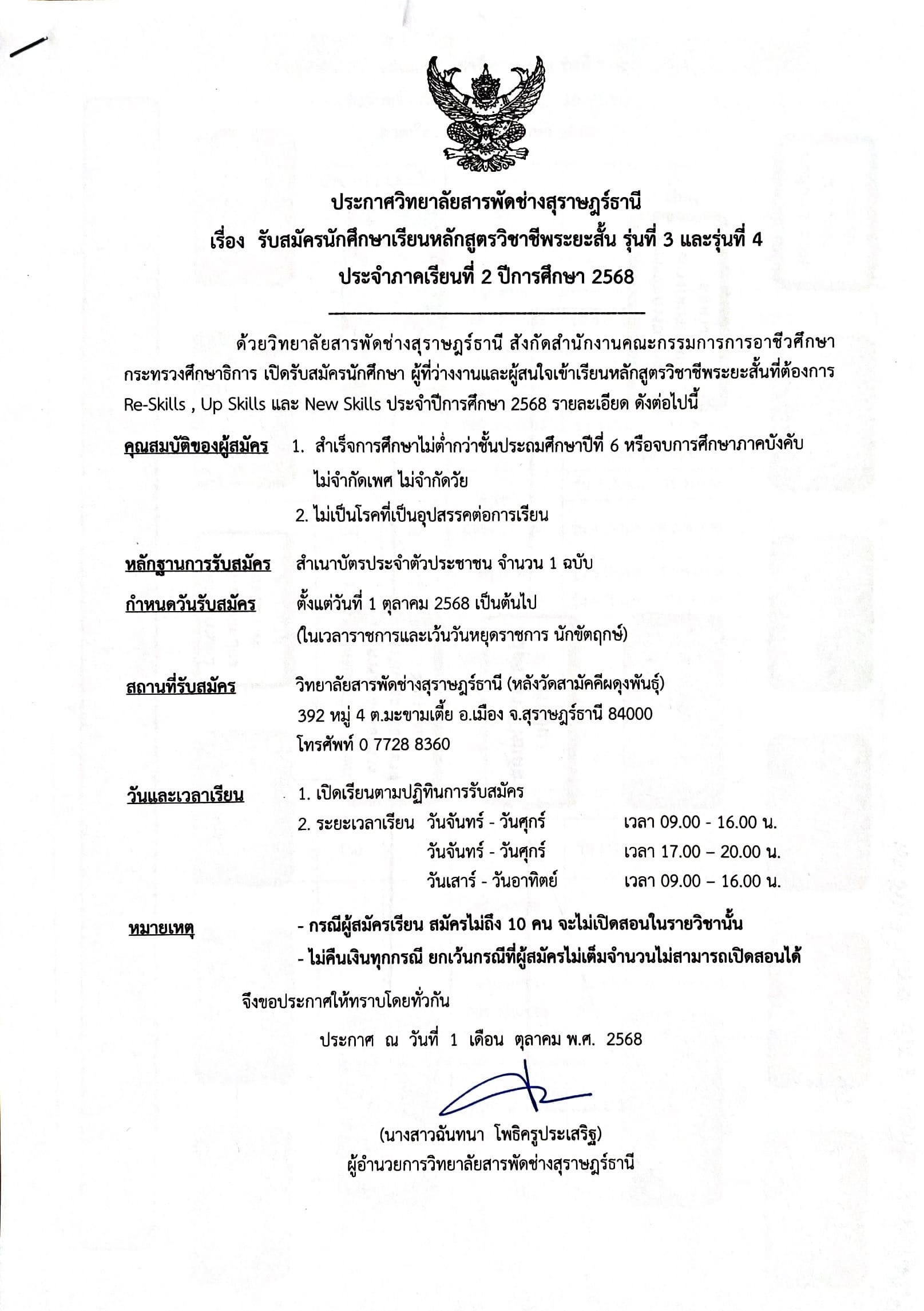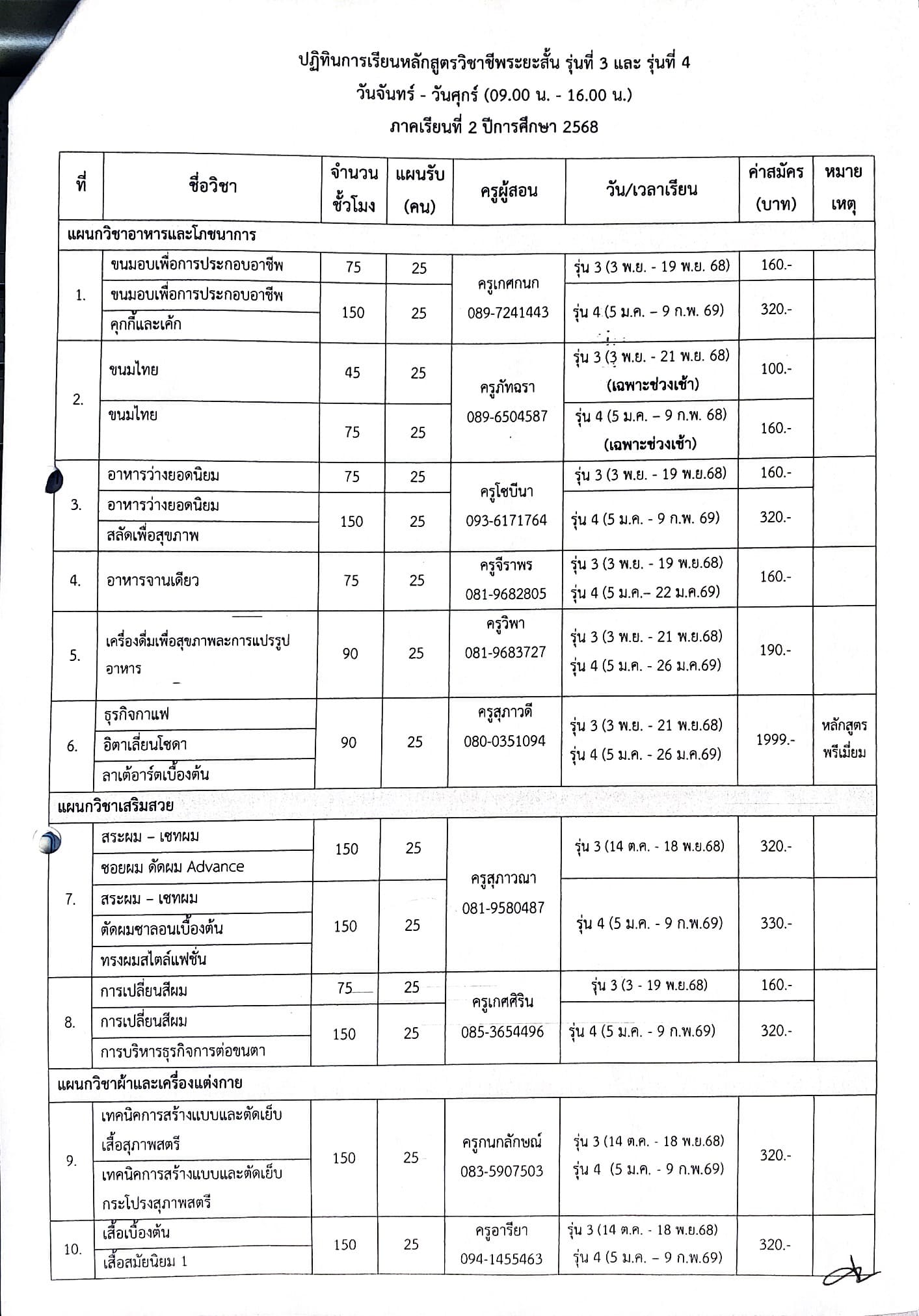 ประกาศ เรื่อง รับสมัครนักศึกษาหลักสูตรวิชาชีพระยะสั้น รุ่นที่ 3 ุร่นที่ 4 ปีการศึกษา 2568