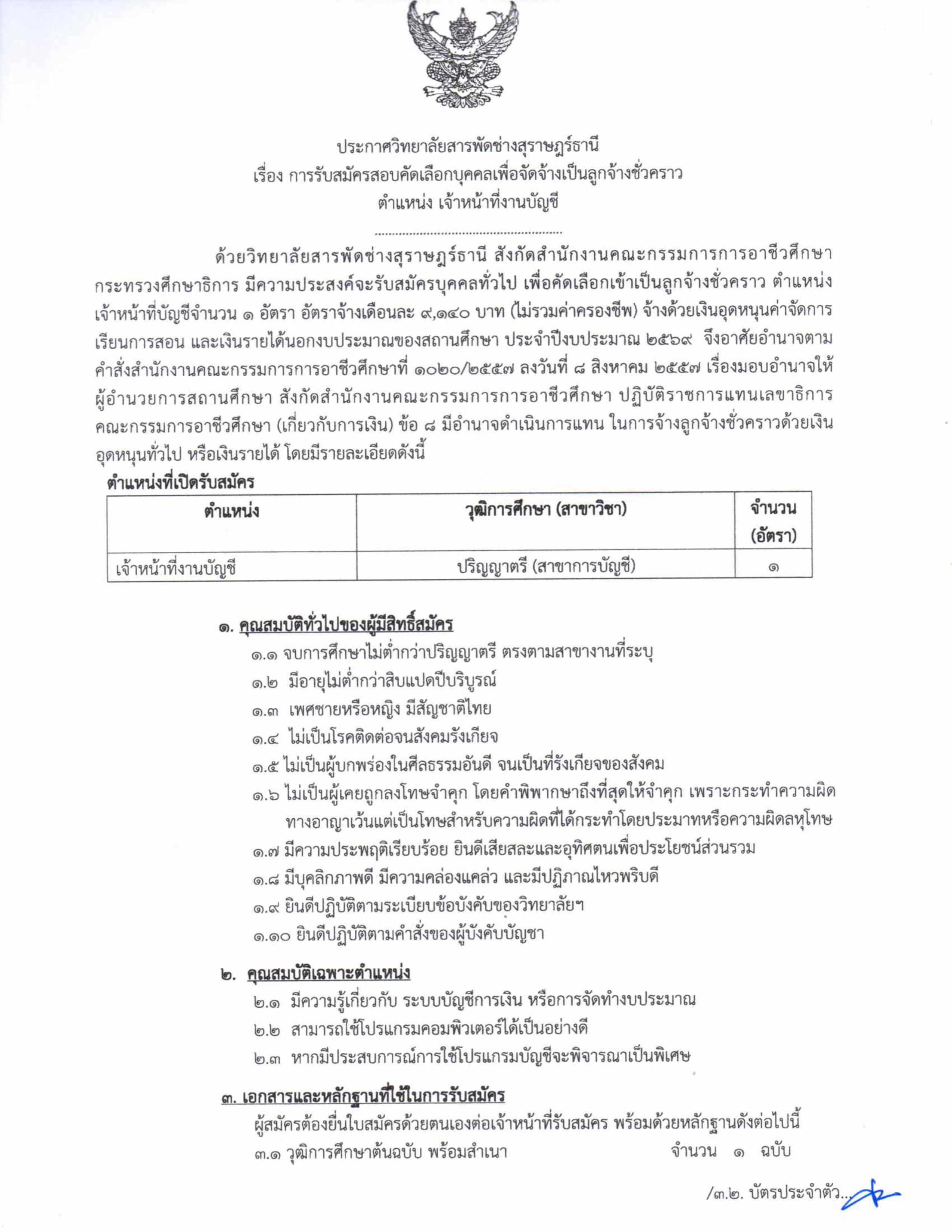 ประกาศ เรื่อง การรับสมัครสอบคัดเลือกบุคคลเพื่อจัดจ้างเป็นลูกจ้างชั่วคราว ตำแหน่ง เจ้าหน้าที่งานบัญชี