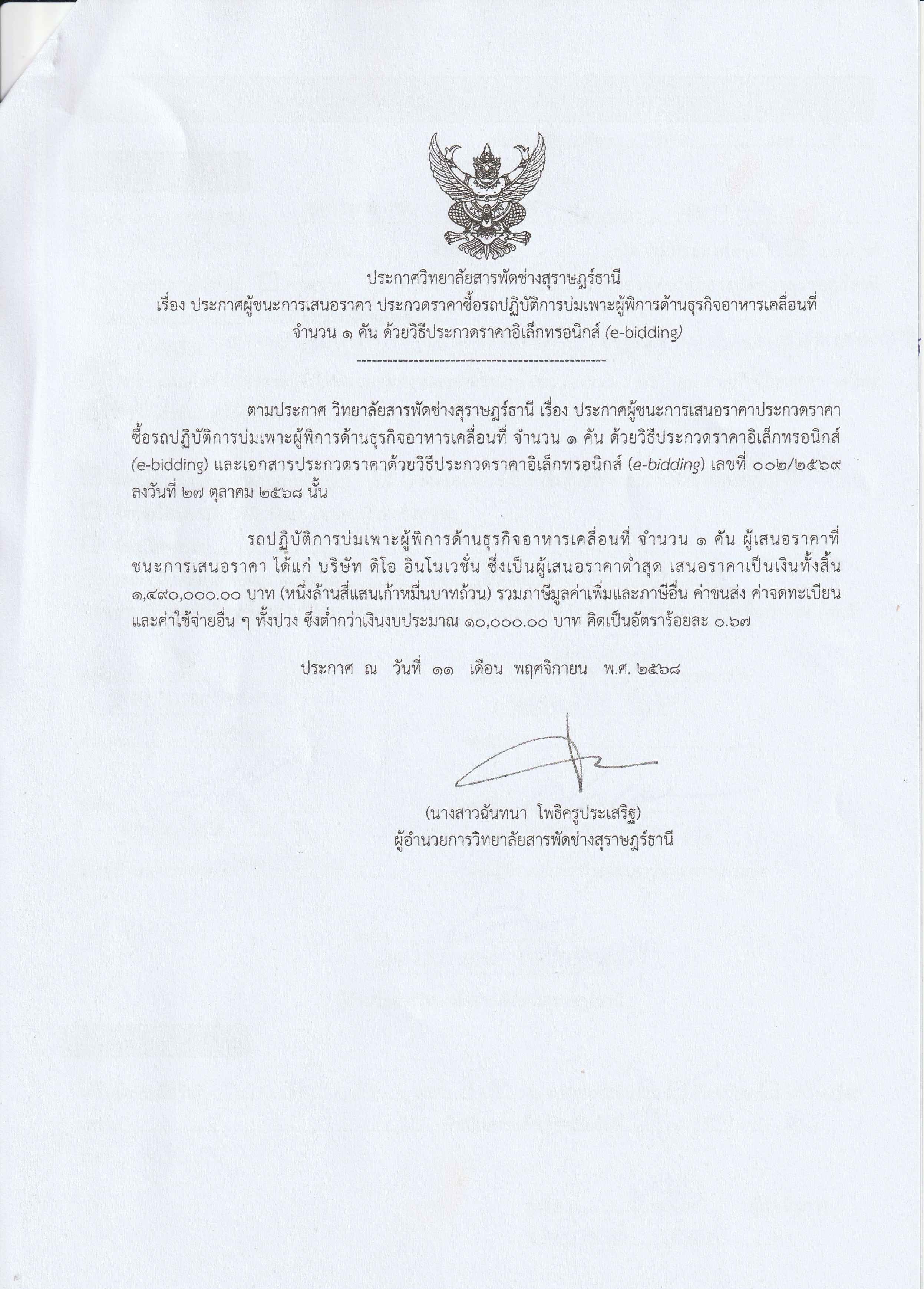 ประกาศ เรื่อง ประกาศผู้ชนะการเสนอราคา ประกวดราคาซื้อรถปฏิบัติการบ่มเพาะผู้พิการด้านธุรกิจอาหารเคลื่อ