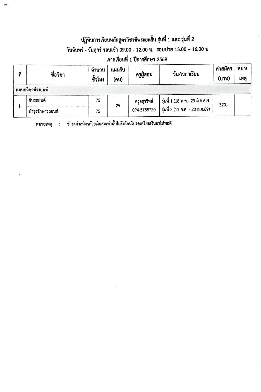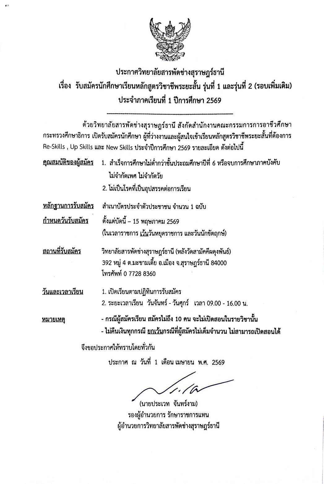 ประกาศ เรื่อง รับสมัครนักศึกษาเรียนหลักสูตรวิชาชีพระยะสั้น รุ่นที่ 1 และรุ่นที่ 2 (รอบเพิ่มเติม)