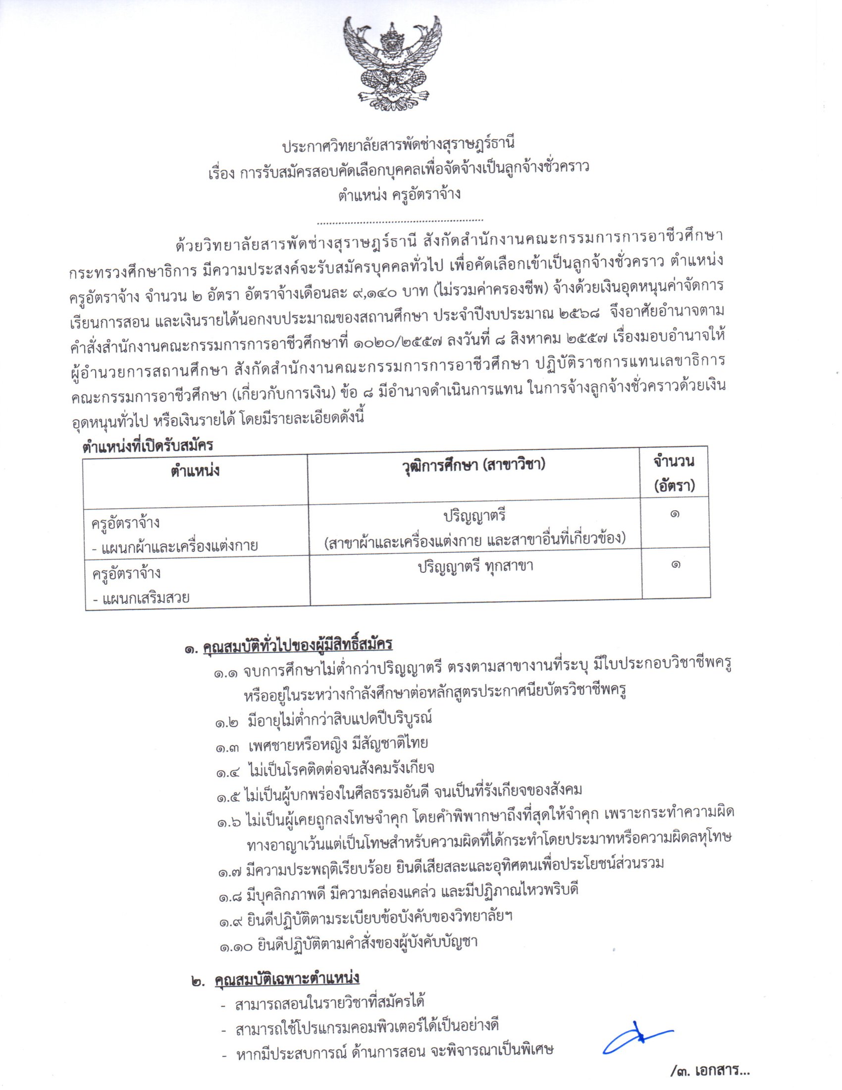 ประกาศ เรื่อง การรับสมัครสอบคัดเลือกบุคคลเพื่อจัดจ้างเป็นลูกจ้างชั่วคราว ตำแหน่งครูอัตราจ้าง