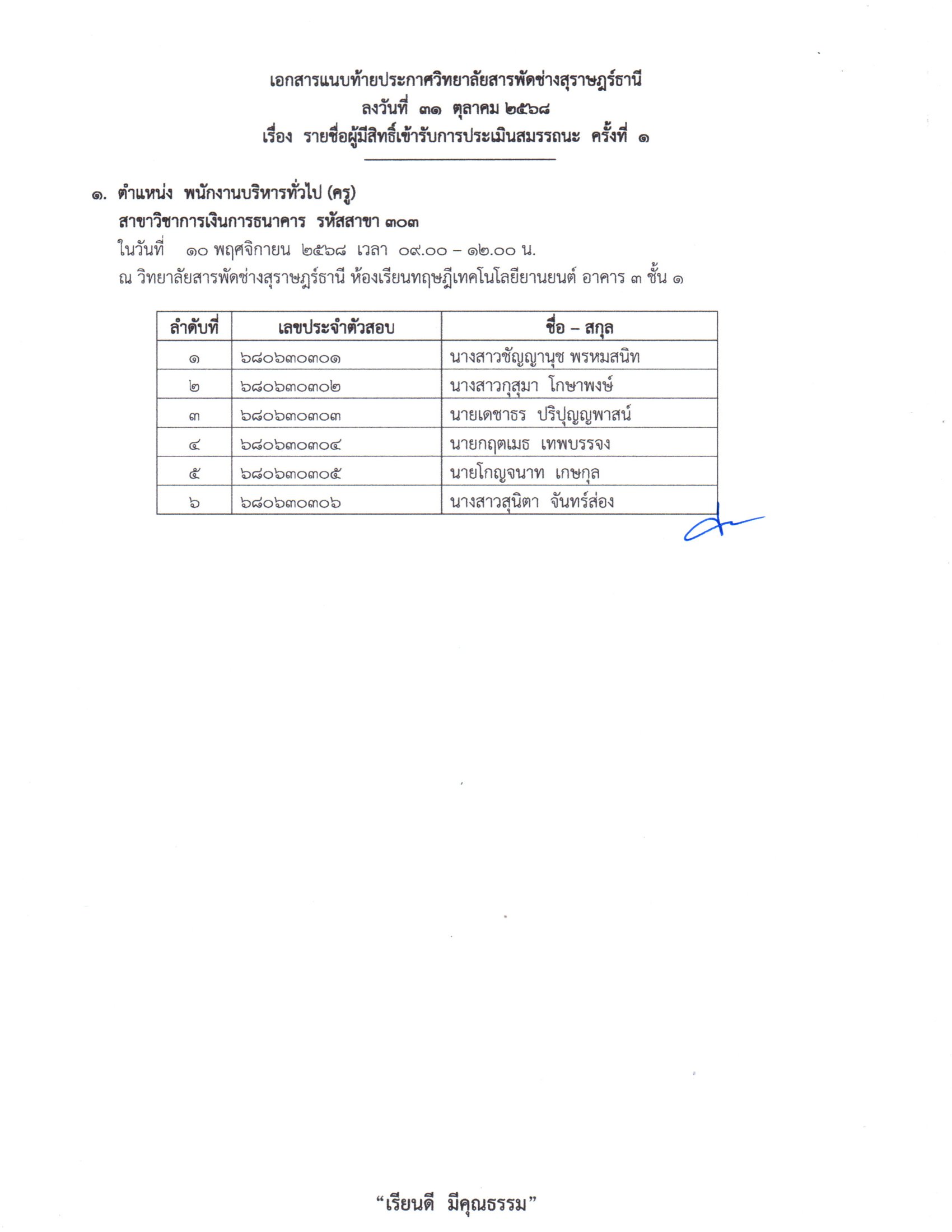 ประกาศ เรื่อง รายชื่อผู้มีสิทธิเข้ารับการประเมินสมรรถนะ ครั้งที่ 1 กำหนดวัน เวลา สถานที่ในการประเมิน