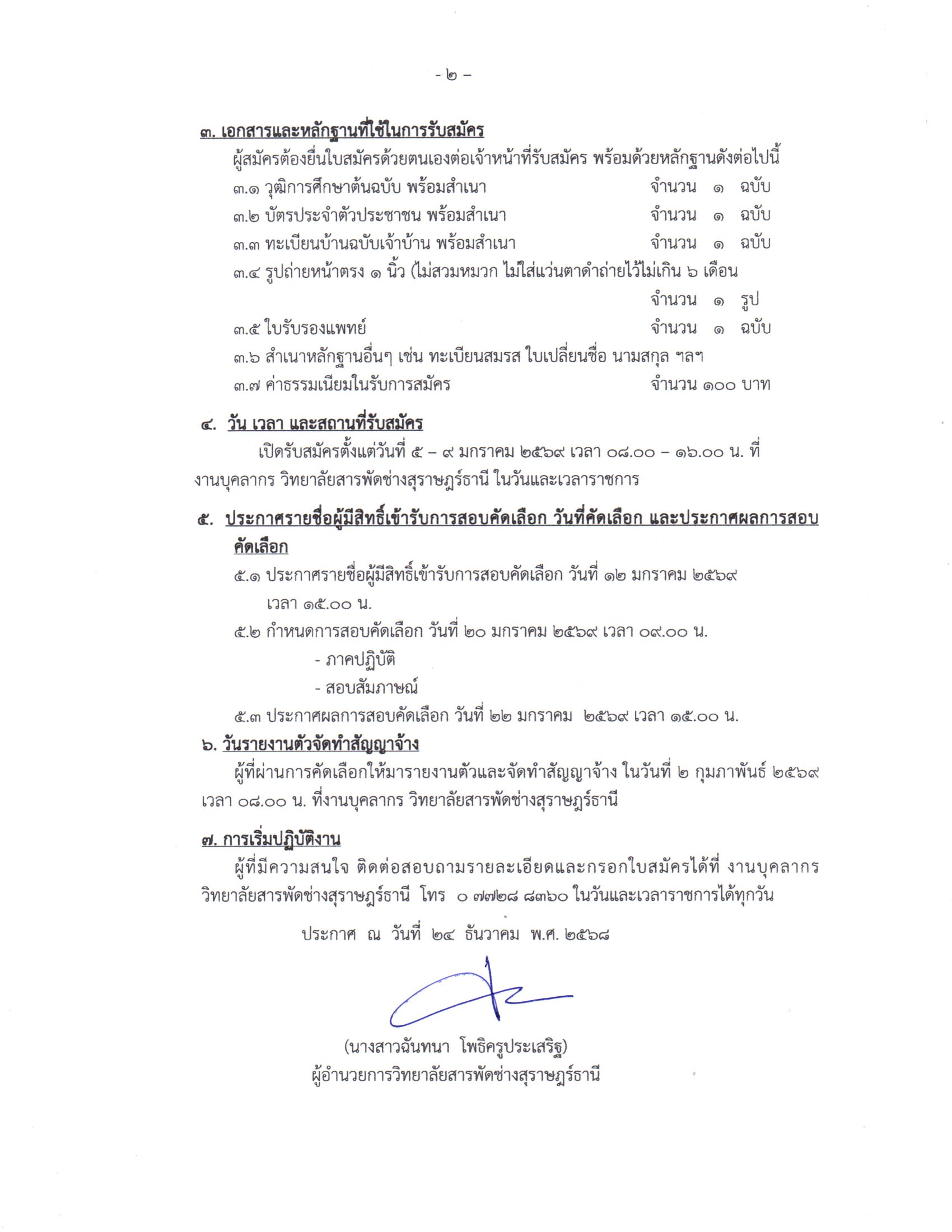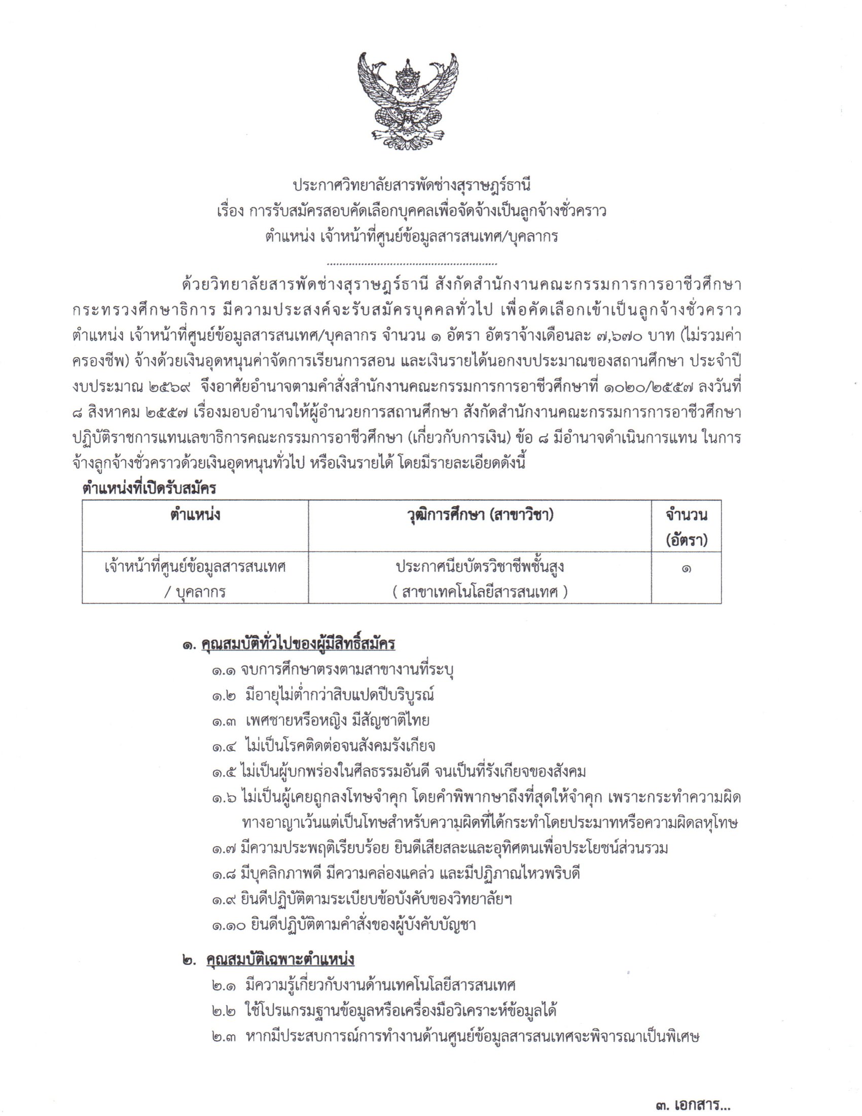 ประกาศ เรื่อง การรับสมัครสอบคัดเลือกบุคคลเพื่อจัดจ้างเป็นลูกจ้างชั่วคราว ตำแหน่งเจ้าหน้าที่งานศูนย์ข
