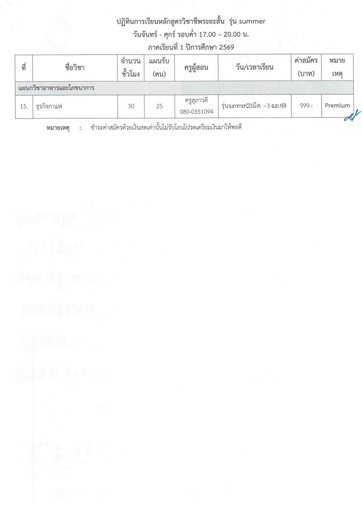 ประกาศ เรื่อง รับสมัครนักศึกษาหลักสูตรวิชาชีพระยะสั้น รุ่น summer รุ่นที่ 1 ุ 2 ปีการศึกษา 2569